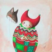 This unique and original contemporary artwork "Cappuccetto rosso e il Pal_lupo" on the subjects of Animals, Child, Pop icons has been created by the contemporary artist Nai.