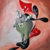 The artist used Gluing, Acrylic media on Paper to create this Surrealism, Small size painting.
