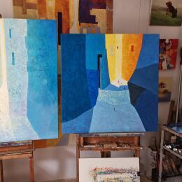 El artista utilizó la técnica Aceite para crear esta pintura Large formato sobre Lienzo de estilo Abstracto sobre los temas Life style, Urbano, Sociedad.