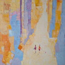 Pintura Viens avec moi por Tomàs | Pintura Abstracto Sociedad Urbano Life style Aceite