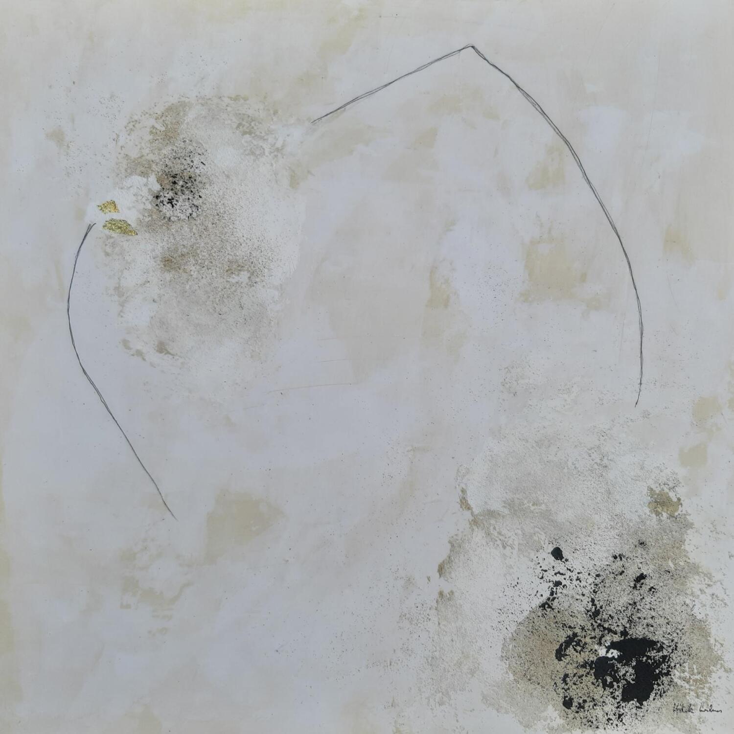 El artista utilizó las técnicas Acrílico, Hoja de oro para crear esta pintura Pequeño formato sobre Cartón de estilo Abstracto.