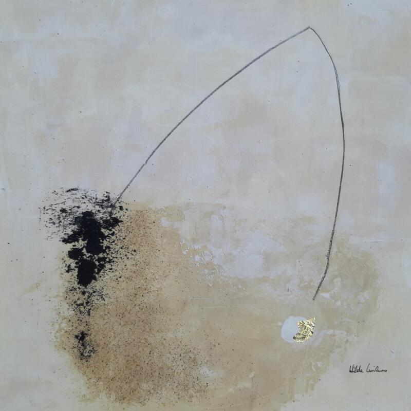 El artista utilizó las técnicas Acrílico, Hoja de oro para crear esta pintura Pequeño formato sobre Cartón de estilo Abstracto.