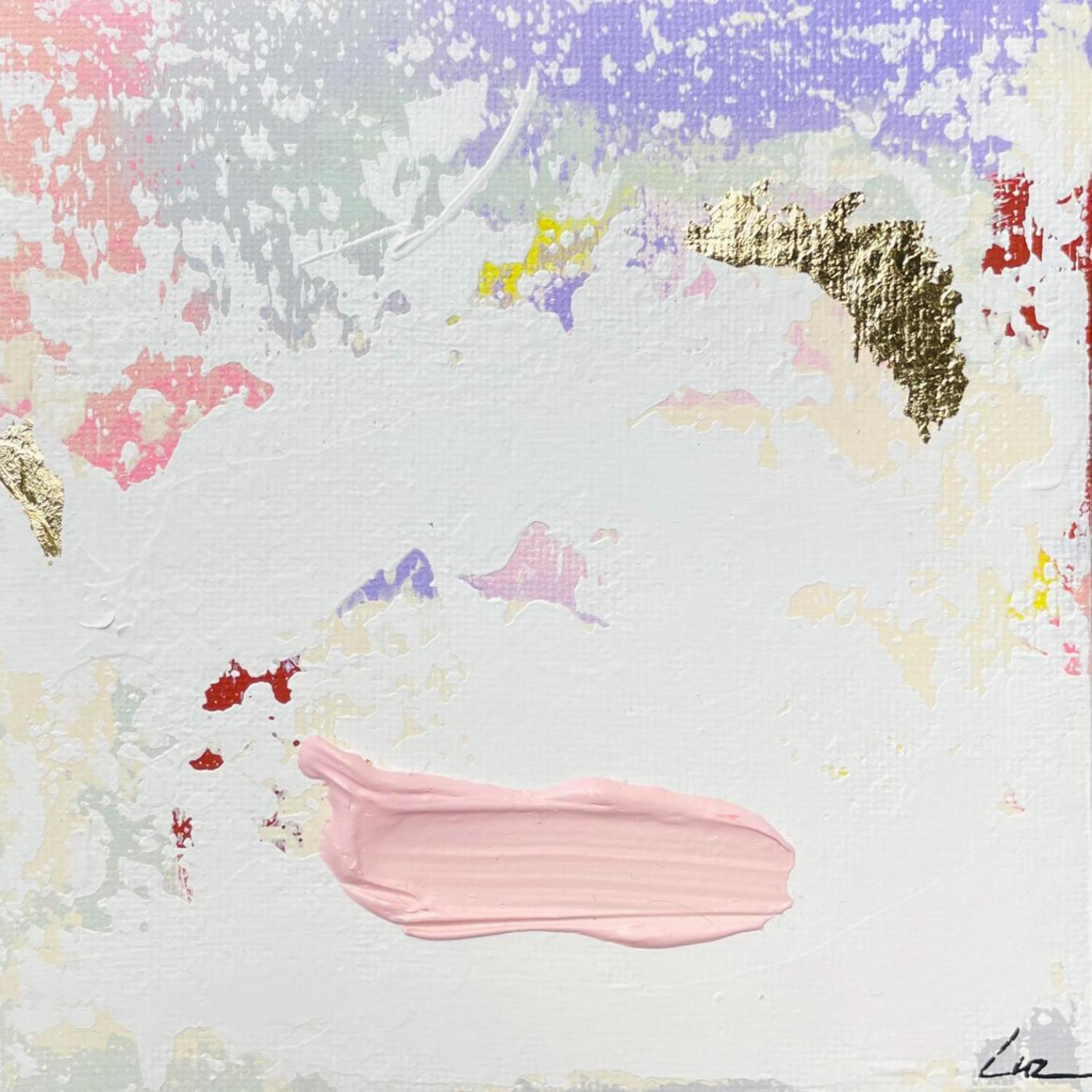 El artista utilizó las técnicas Acrílico, Hoja de oro para crear esta pintura Pequeño formato sobre Tablero de lienzo de estilo Abstracto sobre el tema Minimalista.