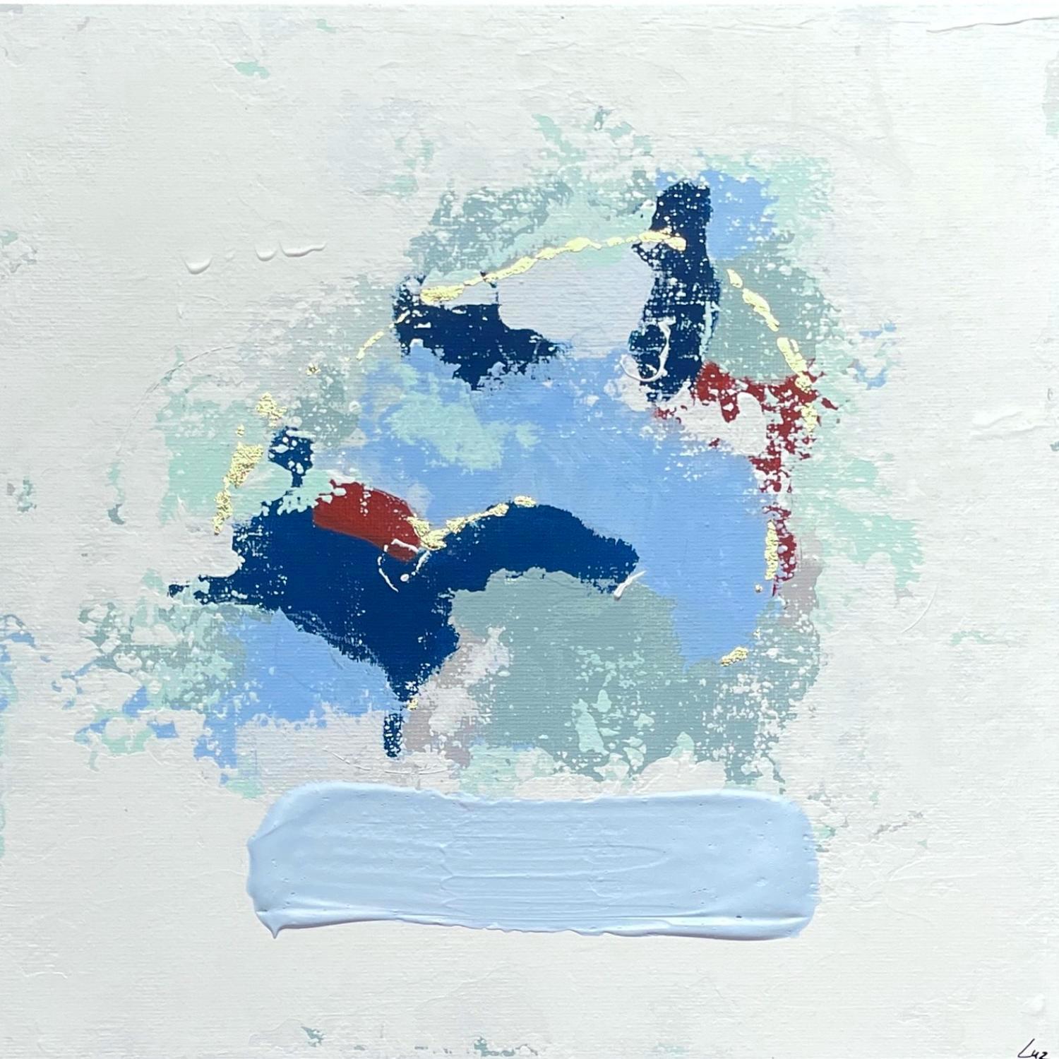 El artista utilizó las técnicas Acrílico, Hoja de oro para crear esta pintura Pequeño formato sobre Tablero de lienzo de estilo Abstracto sobre el tema Minimalista.