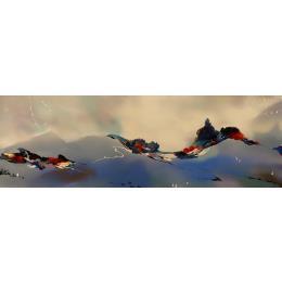 El artista utilizó las técnicas Acrílico, Ink para crear esta pintura Large formato sobre Lienzo de estilo Abstracto sobre el tema Minimalista.