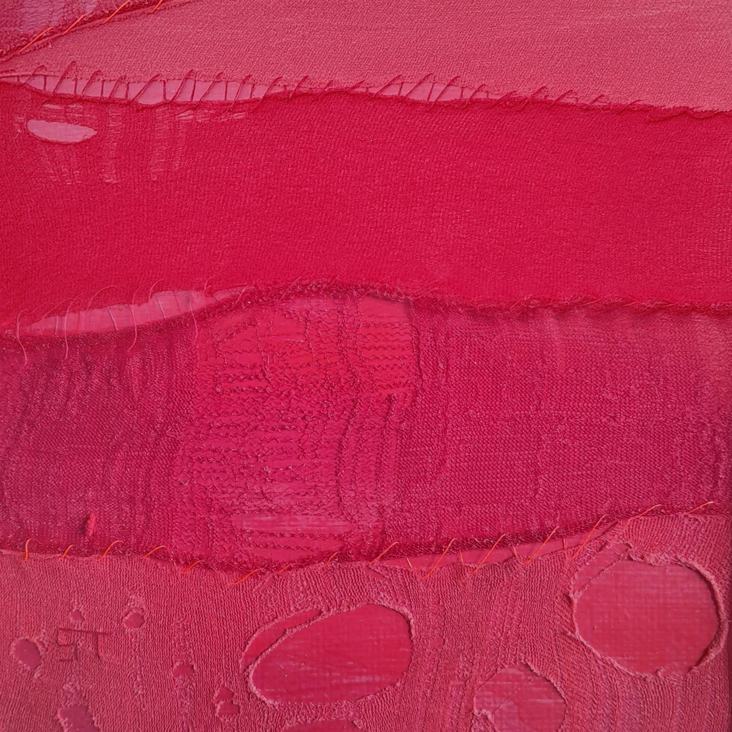 El artista utilizó las técnicas Acrílico, Textil para crear esta pintura Pequeño formato sobre Lienzo de estilo Abstracto.