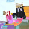 El artista utilizó las técnicas Collage, Hoja de oro, Pastel, Acrílico, Cartón para crear esta pintura Pequeño formato sobre Lienzo de estilo Abstracto sobre el tema Paisajes.