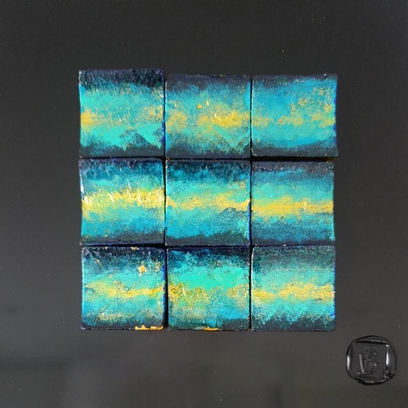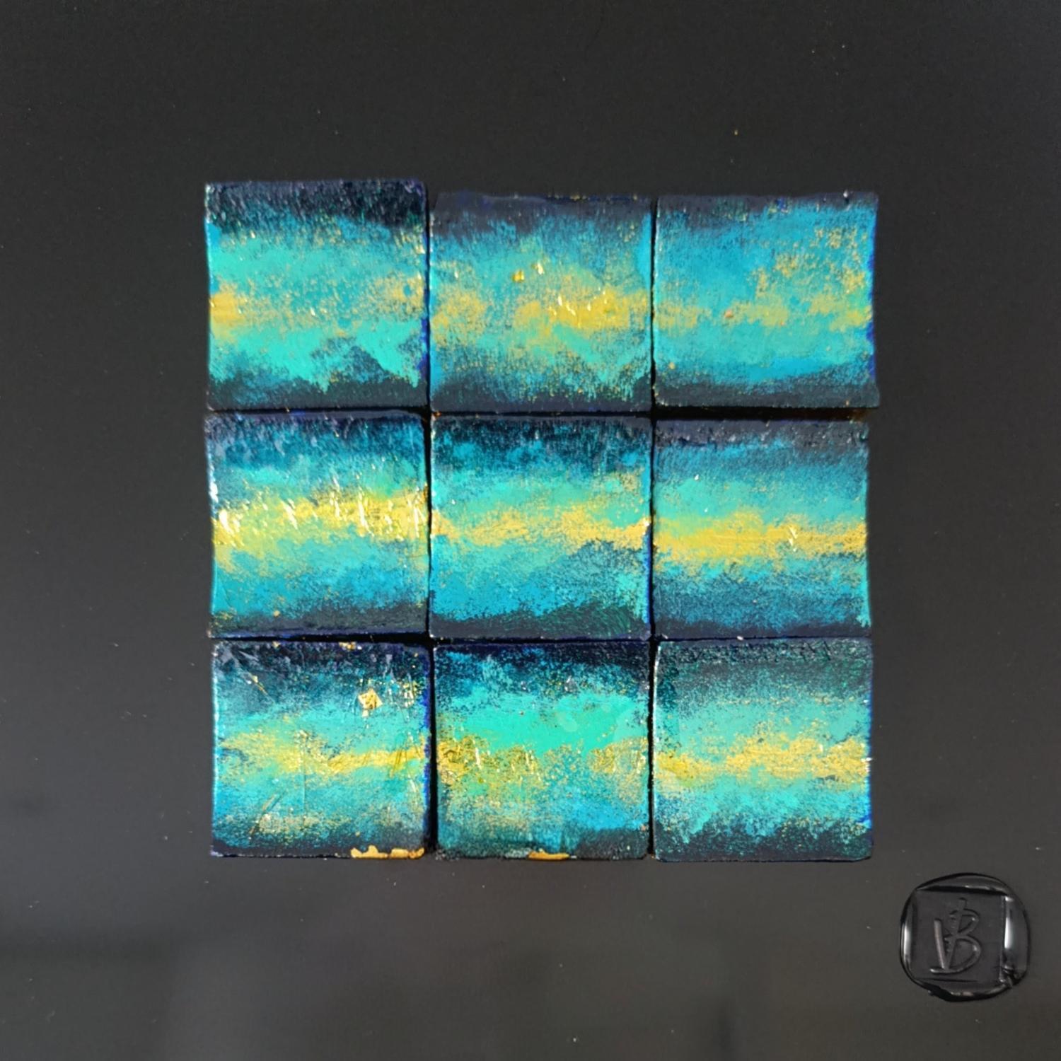 El artista utilizó la técnica Collage para crear esta pintura Pequeño formato sobre Dibon de estilo Abstracto sobre el tema Minimalista.