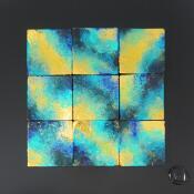 El artista utilizó la técnica Collage para crear esta pintura Pequeño formato sobre Dibon de estilo Abstracto sobre el tema Minimalista.
