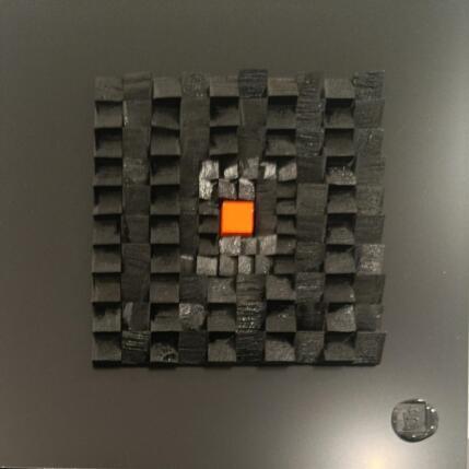 El artista utilizó la técnica Collage para crear esta pintura Pequeño formato sobre Dibon de estilo Abstracto sobre el tema Minimalista.