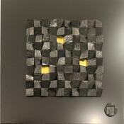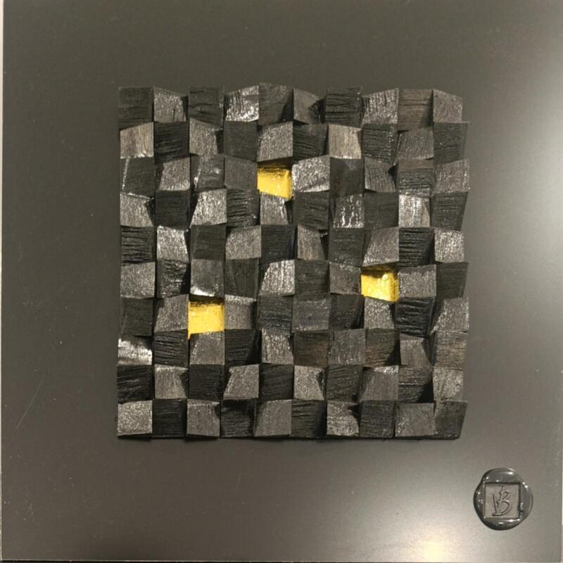 El artista utilizó la técnica Collage para crear esta pintura Pequeño formato sobre Dibon de estilo Abstracto sobre el tema Minimalista.