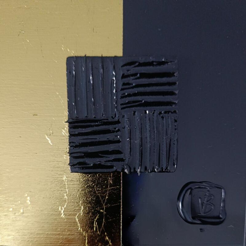 El artista utilizó la técnica Collage para crear esta pintura Pequeño formato sobre Dibon de estilo Abstracto sobre el tema Minimalista.