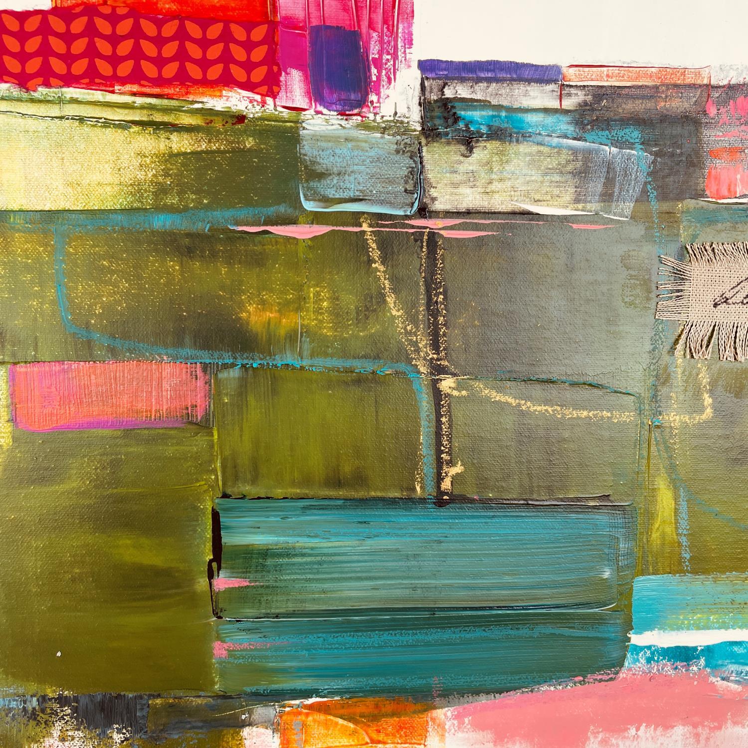 El artista utilizó las técnicas Collage, Hoja de oro, Papel, Pastel, Acrílico para crear esta pintura Large formato sobre Lienzo de estilo Abstracto sobre el tema Paisajes.