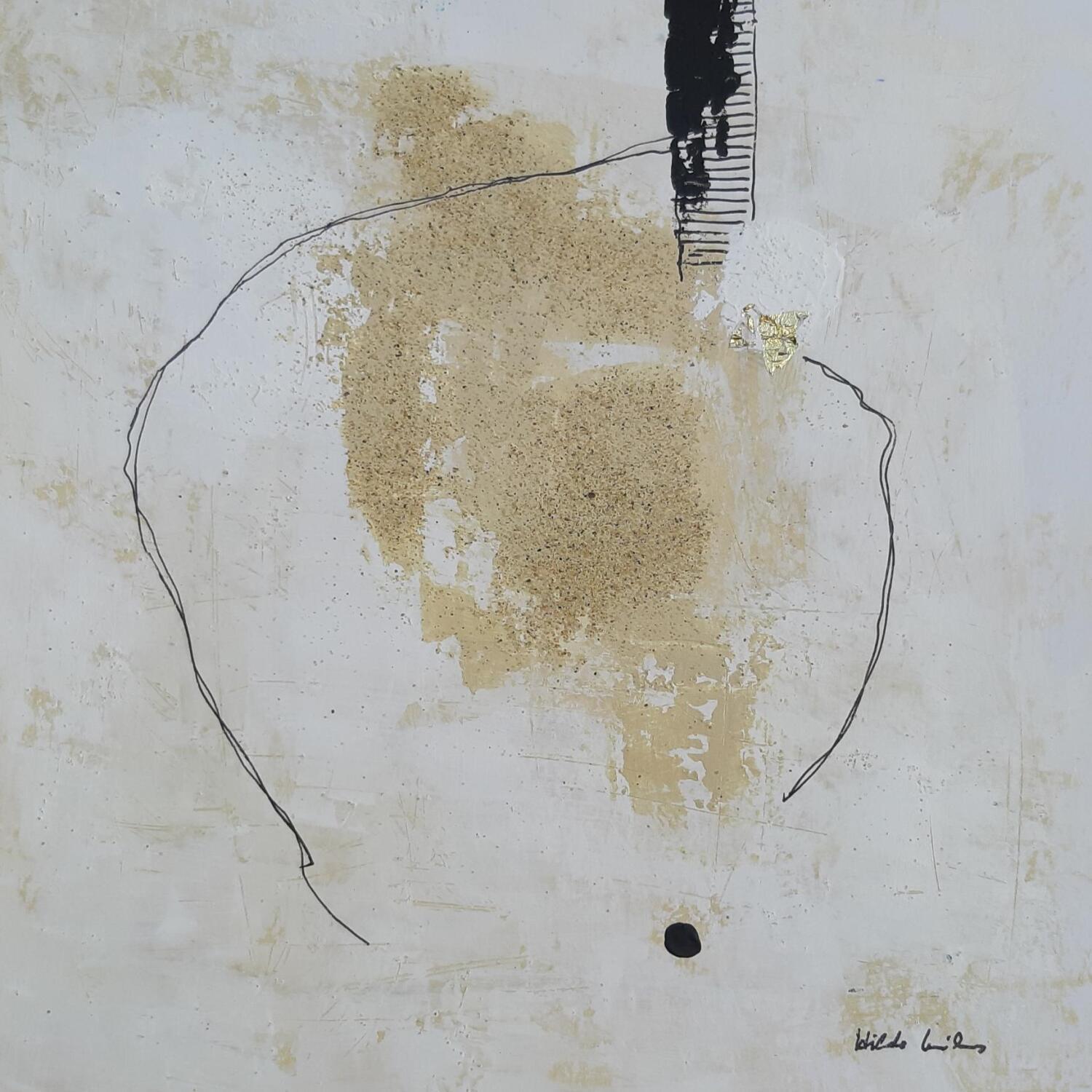 El artista utilizó las técnicas Hoja de oro, Acrílico para crear esta pintura Pequeño formato sobre Cartón de estilo Abstracto.