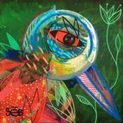 El artista utilizó la técnica Acrílico para crear esta pintura Pequeño formato sobre Madera de estilo Arte bruto sobre los temas Animales, Naturaleza.