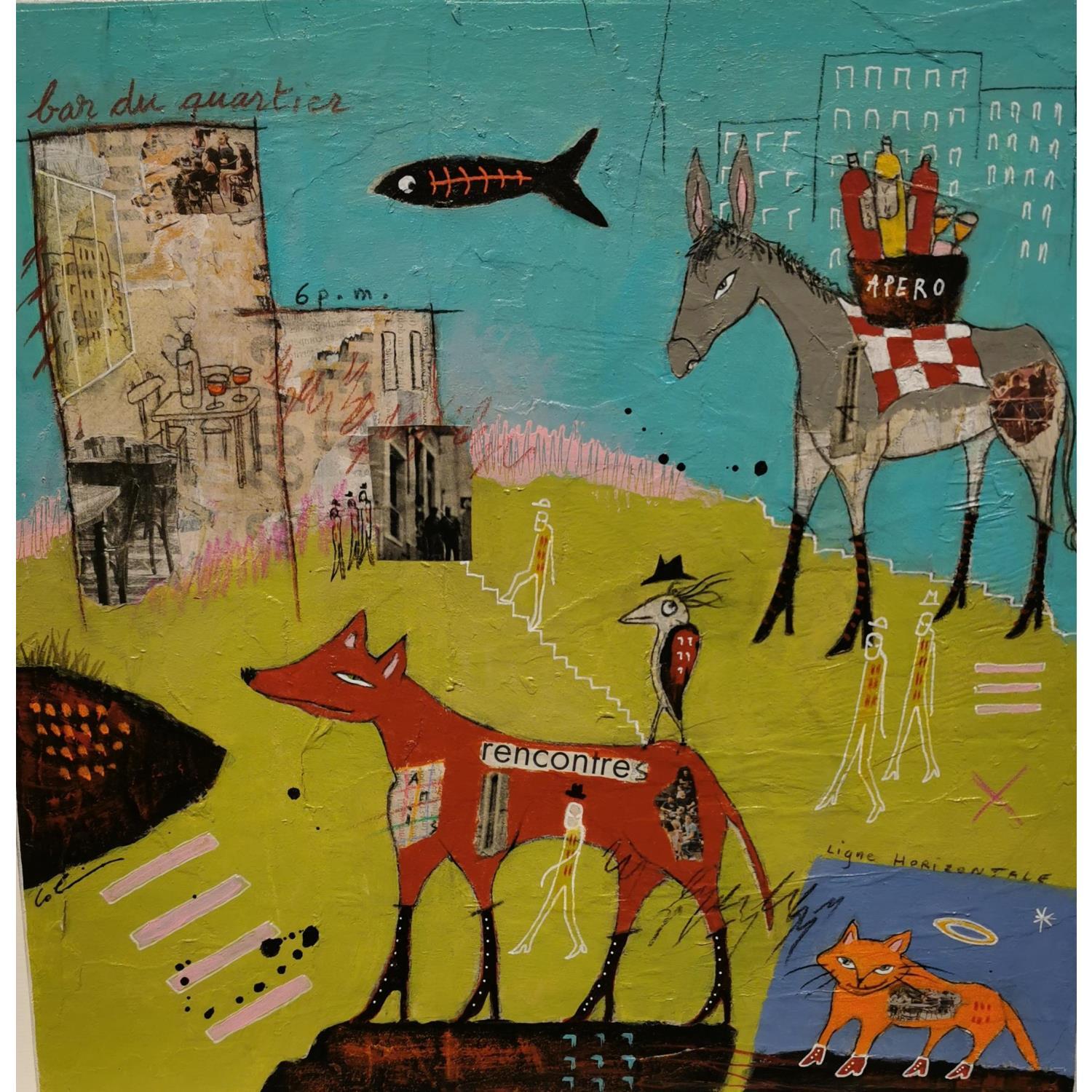 Esta obra de arte contemporáneo única y original "6 p.m. Apéro" fue realizada por el artista contemporáneo Colin Sylvie.