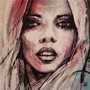 El artista utilizó las técnicas Acrílico, Graffiti para crear esta pintura Pequeño formato sobre Cartón de estilo Arte callejero sobre el tema Retrato.