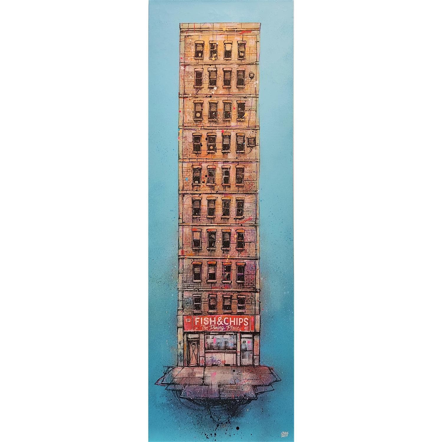 El artista utilizó la técnica Acrílico para crear esta pintura Large formato sobre Lienzo de estilo Arte callejero sobre el tema Urbano.