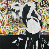 El artista utilizó las técnicas Graffiti, Acrílico para crear esta pintura Pequeño formato sobre Lienzo de estilo Arte callejero sobre el tema Life style.