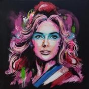 El artista utilizó las técnicas Graffiti, Posca para crear esta pintura Large formato sobre Lienzo de estilo Arte callejero sobre el tema Retrato.