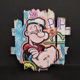 Esta obra de arte contemporáneo única y original ha sido realizada por el artista contemporáneo Sufyr. El artista ha utilizado técnicas de pintura acrílica y collage para crear este cuadro de pequeño formato sobre madera y cartón de estilo Street Art. ¡Acabado ultrabrillante gracias a un barniz para carrocerías!