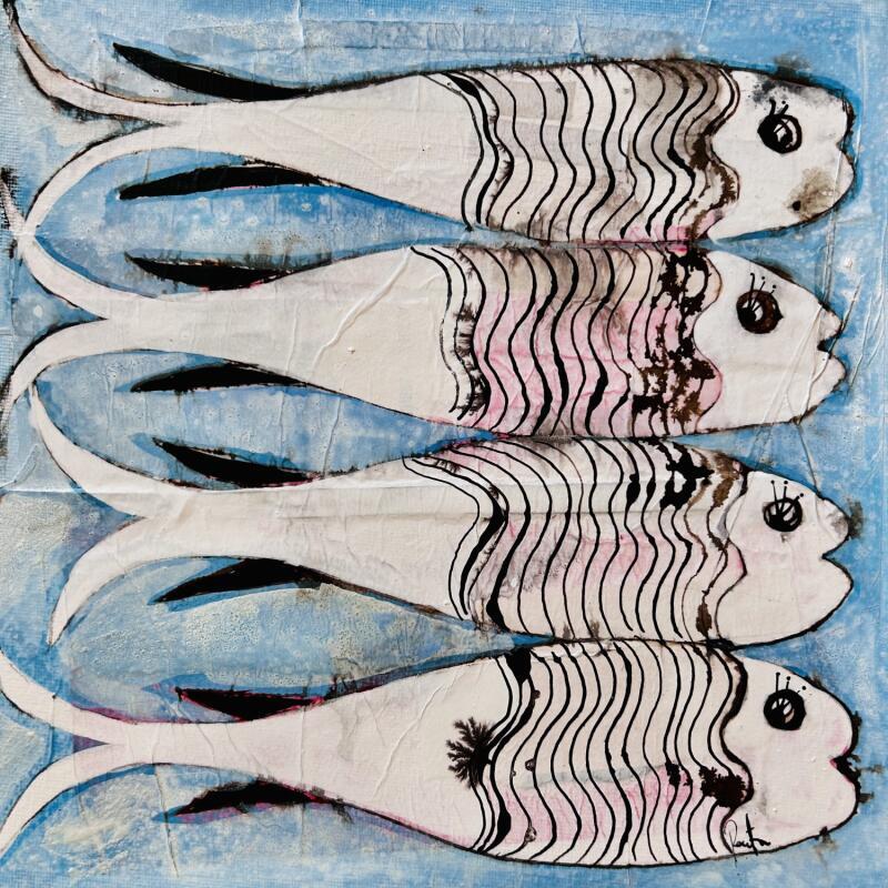 Esta obra de arte contemporáneo única y original "Les merlans" fue realizada por el artista contemporáneo Colombo Cécile.