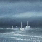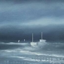 El artista utilizó la técnica Aceite para crear esta pintura Pequeño formato sobre Lienzo de estilo Figurativo sobre el tema Marine.