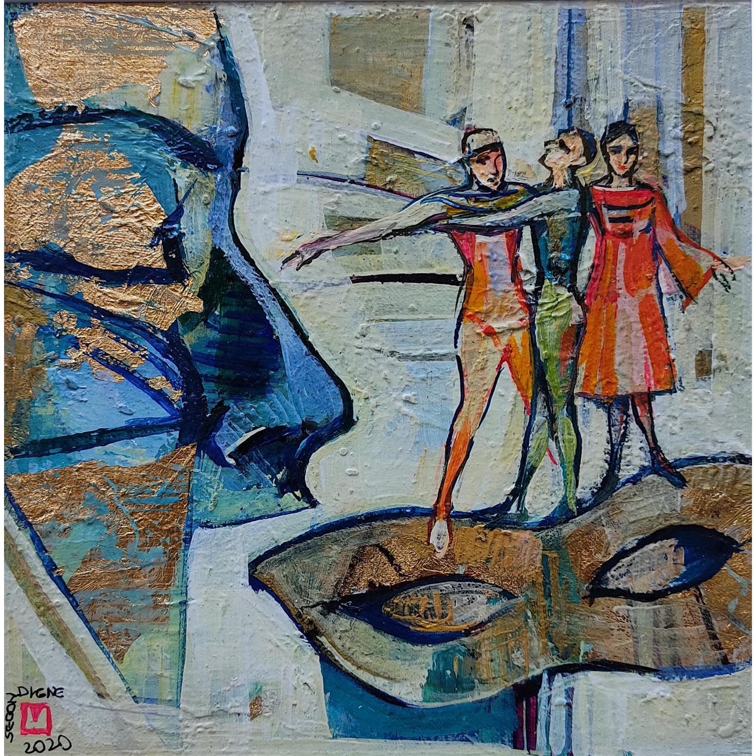 El artista utilizó las técnicas Aceite, Acrílico para crear esta pintura Pequeño formato sobre Lienzo de estilo Figurativo sobre el tema Life style.