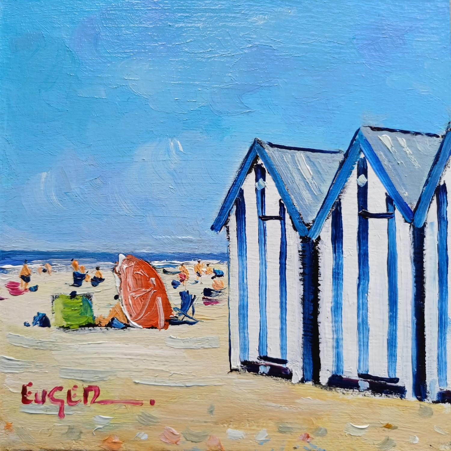 Esta obra de arte contemporáneo única y original "CABINES RAYEES AU TOUQUET" fue realizada por el artista contemporáneo Euger.