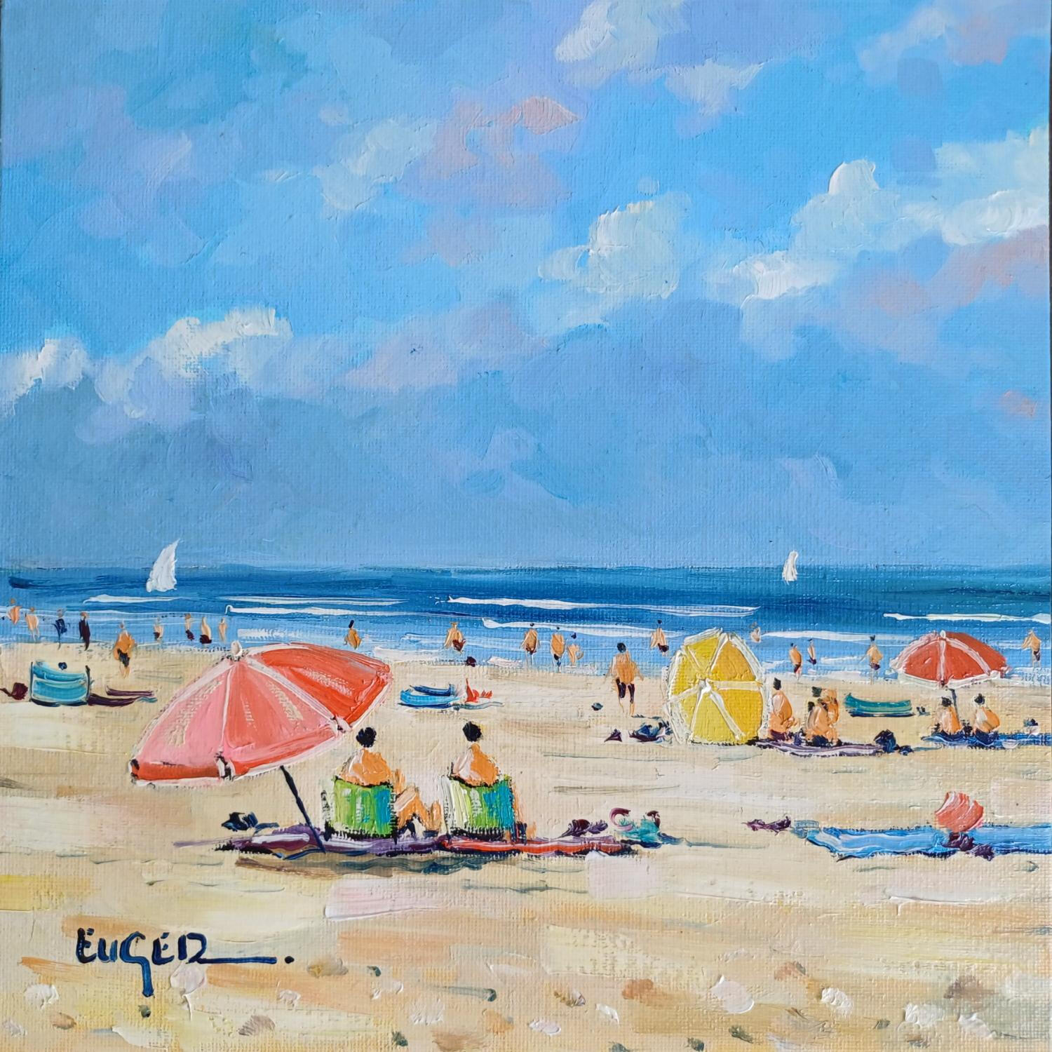 Esta obra de arte contemporáneo única y original "SCENE DE PLAGE AU TOUQUET" fue realizada por el artista contemporáneo Euger.