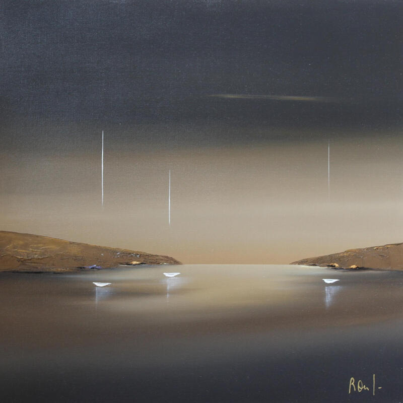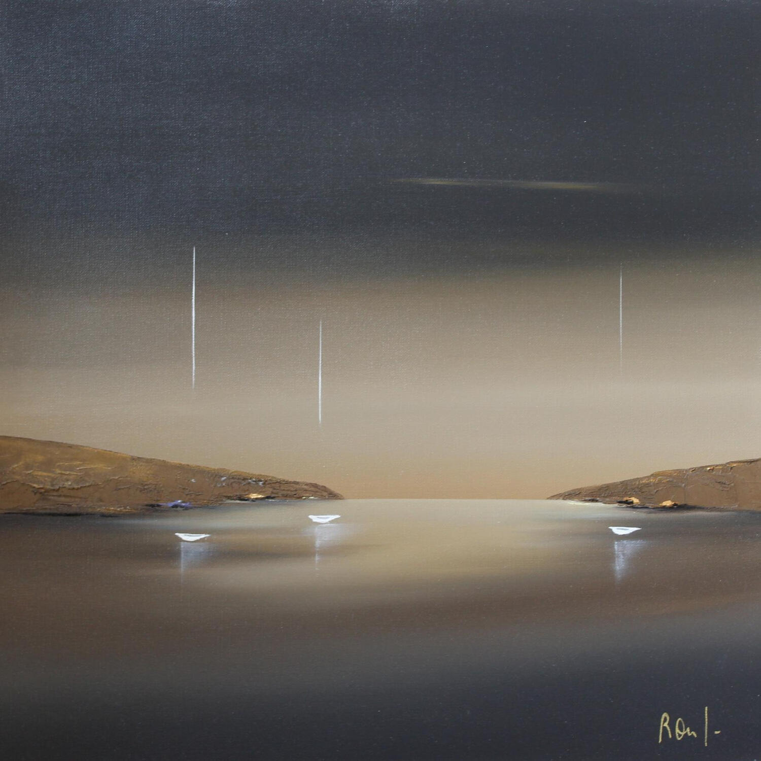 El artista utilizó la técnica Aceite para crear esta pintura Pequeño formato sobre Papel de estilo Figurativo sobre los temas Marine, Minimalista.