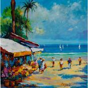Marché aux fleurs sur la plagePintura Marché aux fleurs sur la plage por Cédanne | Pintura Figurativo Paisajes Life style Aceite Acrílico