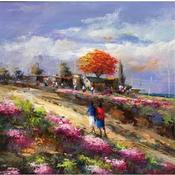 El artista utilizó la técnica Aceite para crear esta pintura Pequeño formato sobre Lienzo de estilo Figurativo sobre el tema Paisajes.