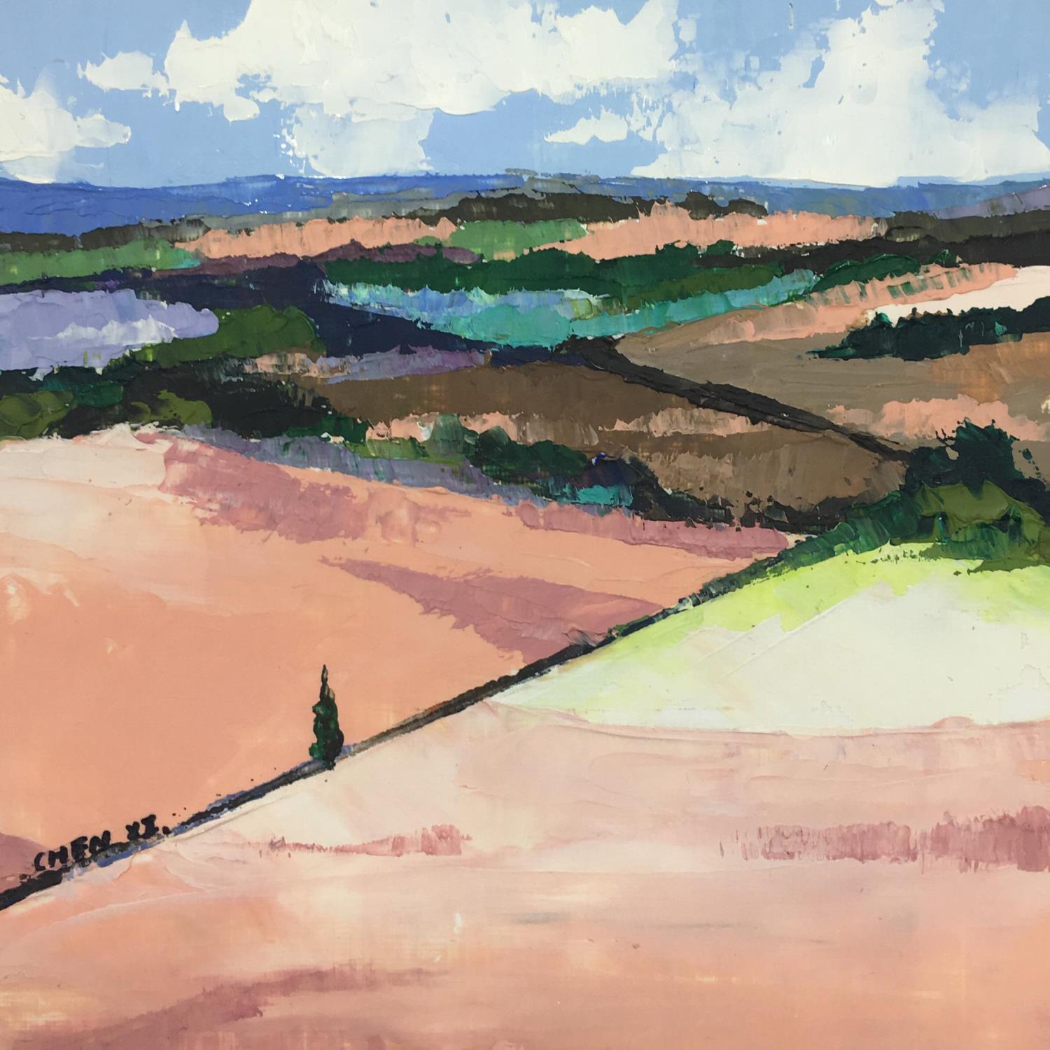 Pintura Champs du Lubéron 2 por Chen Xi | Pintura Figurativo Paisajes Aceite