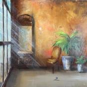 The French artist Virginie Mézan de Malartic qualifies her creation as "painting of beings" as the contrasts modelled on man occupy an important position. Exploring natural or artificial light, playing with areas of shadow and light, allows the artist to update a panel of emotions and feelings. Fly-on-the-wall, the characters that make up her paintings find themselves frozen in a moment, as if suspended outside of time, interrupting their course and leaving a place for reflection and introspection. Virginie Mézan de Malartic invokes in her practice a form of verticality that symbolises the necessity for everyone to distance themselves from their environment, their existence and their world.