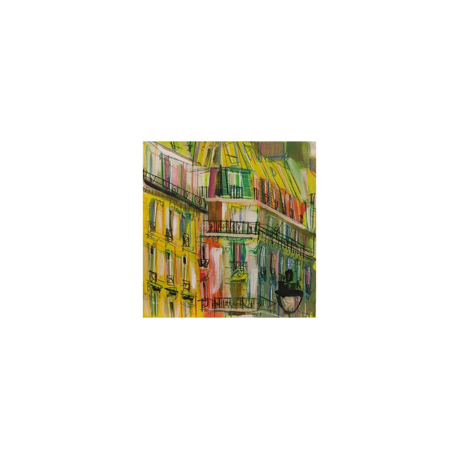 Pintura Quand vient le matin por Anicet Olivier | Pintura Figurativo Urbano Arquitectura Acrílico Pastel