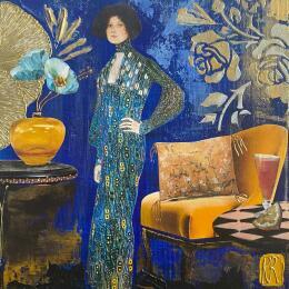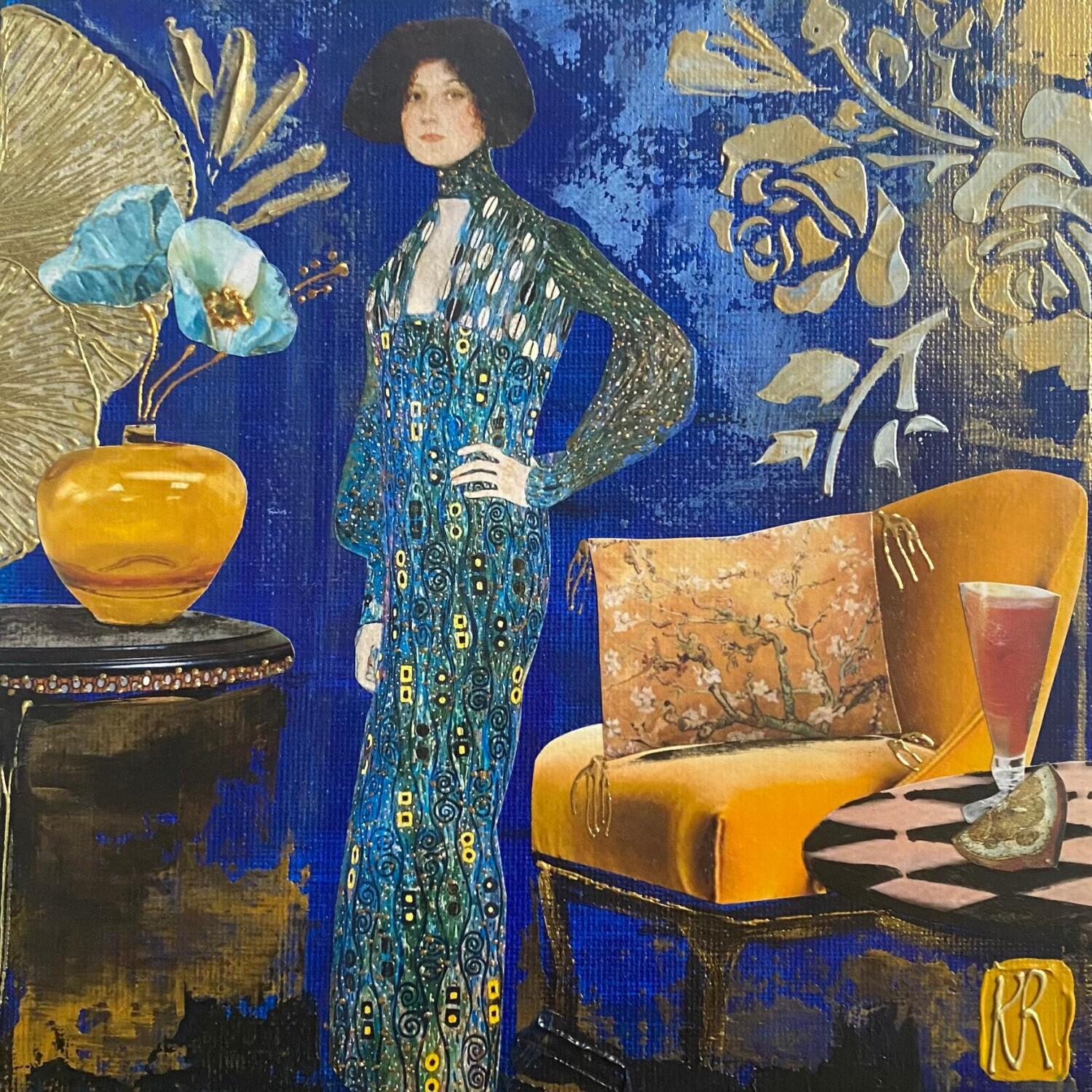 Esta obra de arte contemporáneo única y original "Lady Blue " fue realizada por el artista contemporáneo Romanelli Karine.
