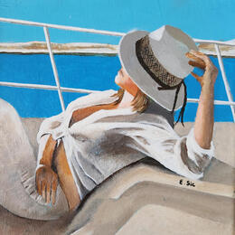 La artista ha utilizado la técnica del acrílico para crear este cuadro de pequeño formato de estilo figurativo.