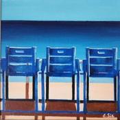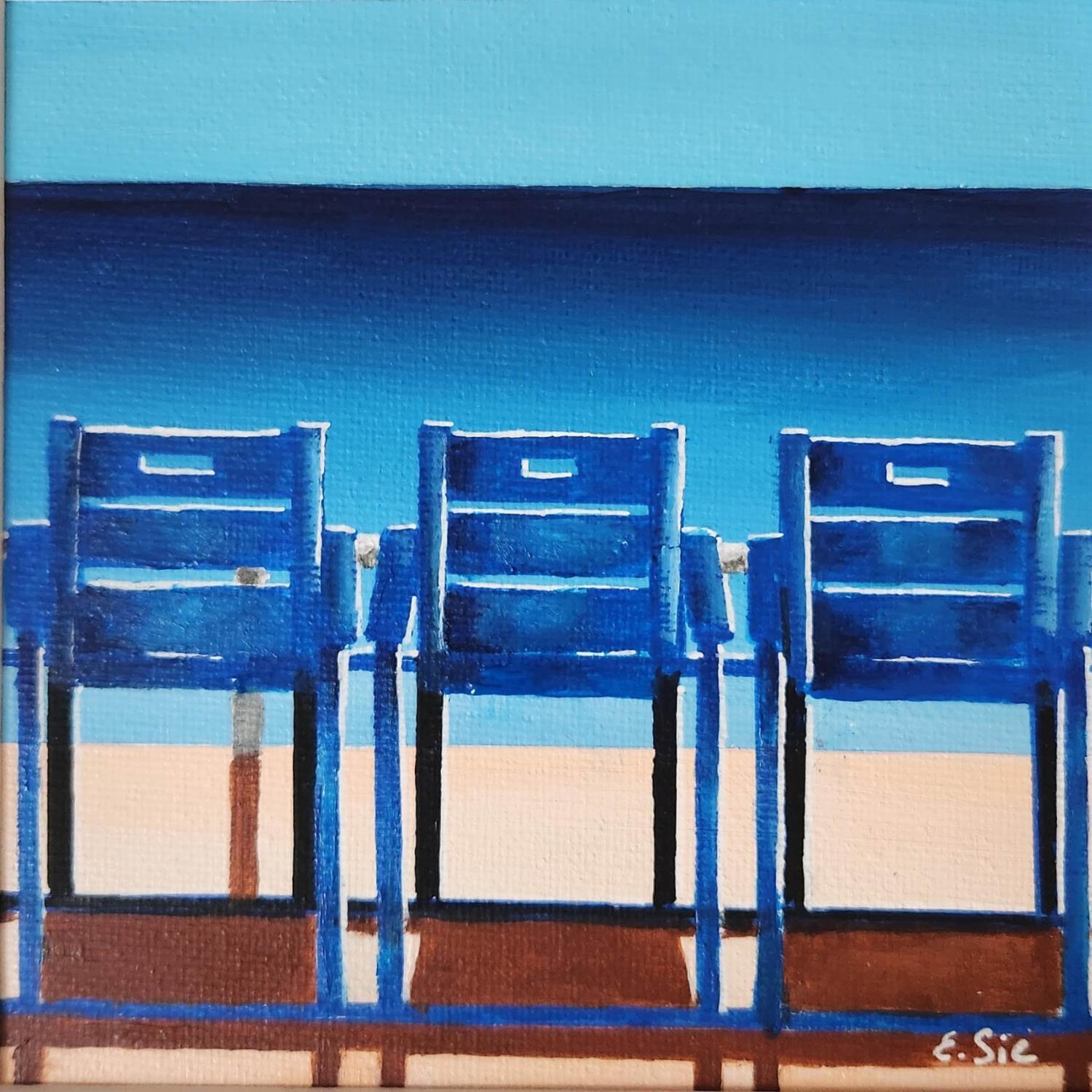 Pintura Les 3 chaises bleues por Sie Evelyne | Pintura Figurativo Life style Acrílico