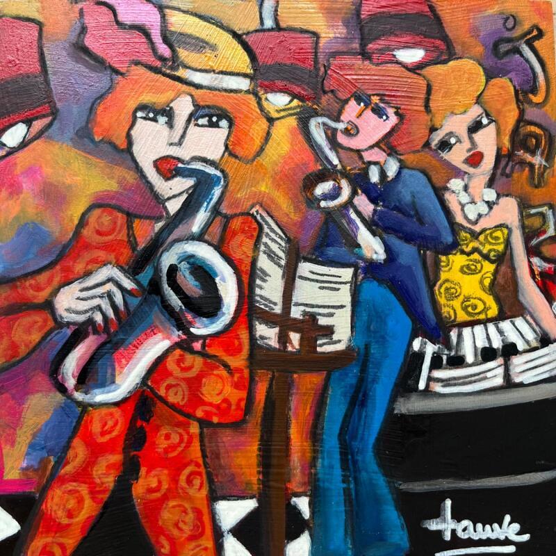 El artista utilizó la técnica Acrílico para crear esta pintura Pequeño formato sobre Madera de estilo Figurativo sobre los temas Música, Life style.
