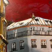 El artista utilizó las técnicas Acrílico, Pastel para crear esta pintura Pequeño formato sobre Papel de estilo Figurativo sobre los temas Urbano, Arquitectura.