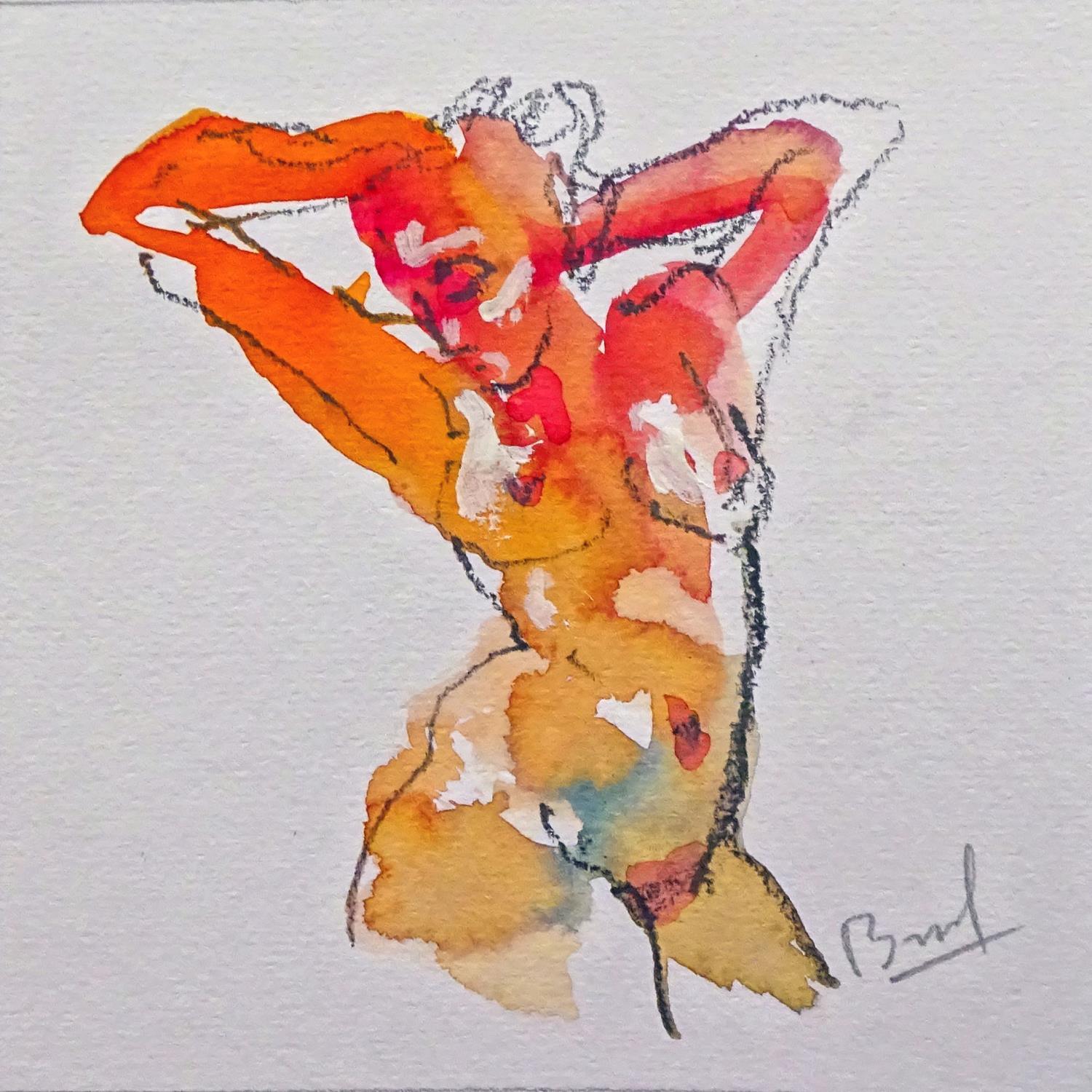 El artista utilizó la técnica Acuarela para crear esta pintura Pequeño formato sobre Papel de estilo Figurativo sobre el tema Desnudo.