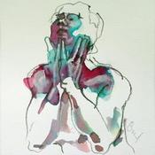 Claire visage bleuPintura Claire visage bleu por Brunel Sébastien | Pintura Figurativo Desnudo Acuarela
