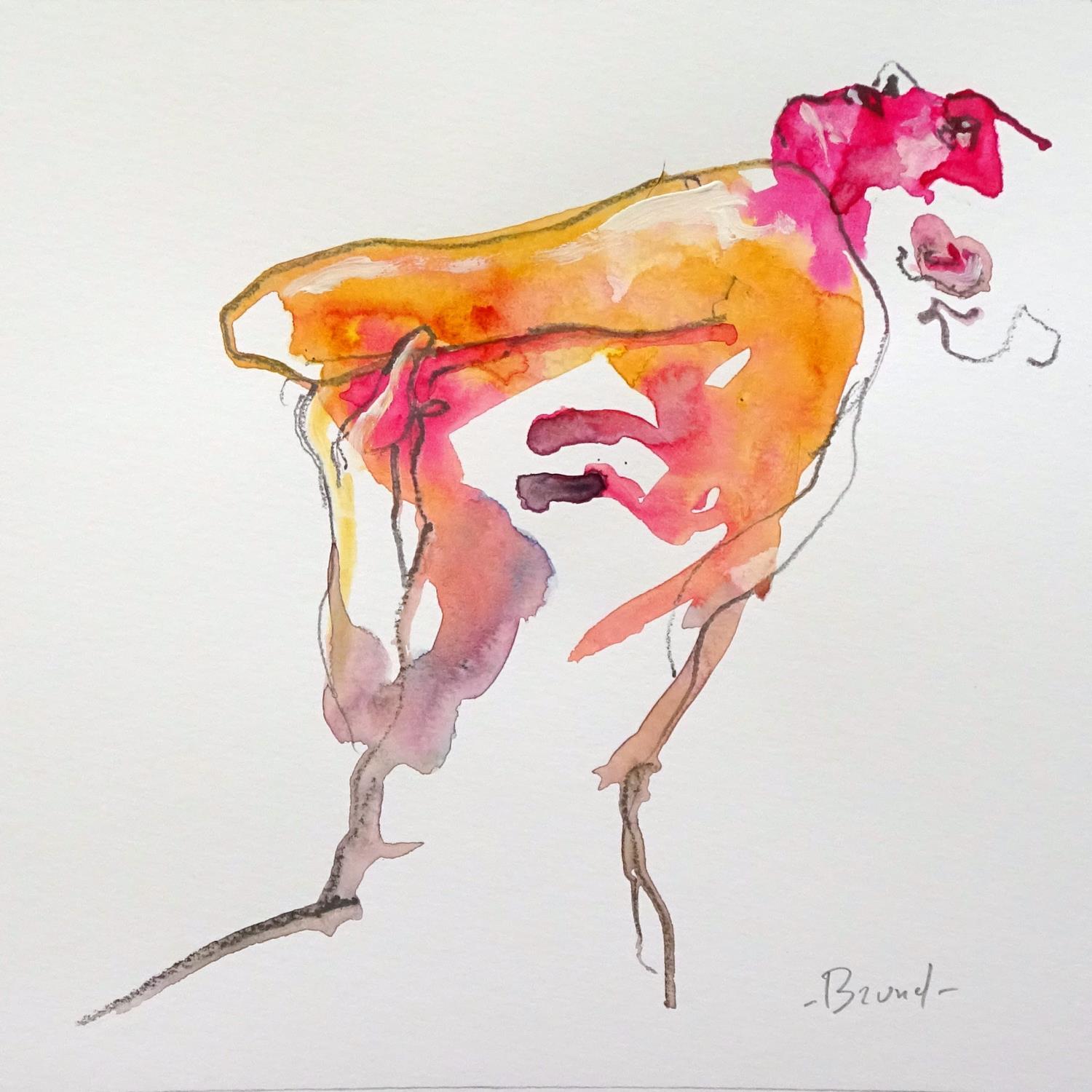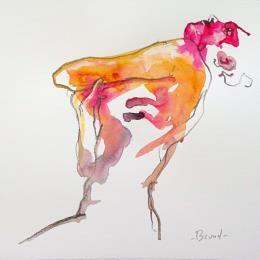 El artista utilizó la técnica Acuarela para crear esta pintura Pequeño formato sobre Papel de estilo Figurativo sobre el tema Desnudo.
