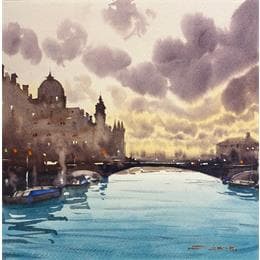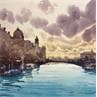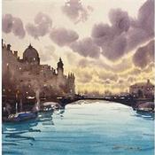 El artista utilizó la técnica Acuarela para crear esta pintura Pequeño formato sobre Papel de estilo Figurativo sobre los temas Paisajes, Life style, Urbano.