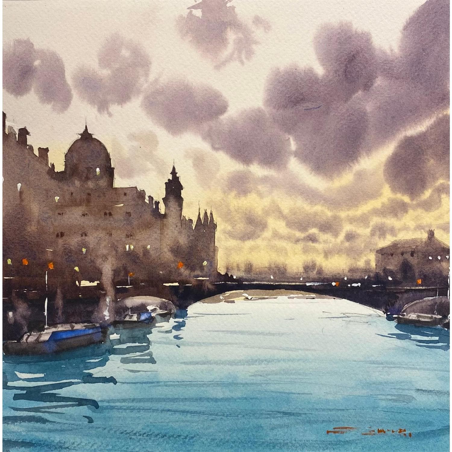 Esta obra de arte contemporáneo única y original "Clouds on My Water" fue realizada por el artista contemporáneo Dandapat Swarup.