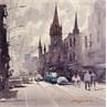 El artista utilizó la técnica Acuarela para crear esta pintura Pequeño formato sobre Papel de estilo Figurativo sobre los temas Paisajes, Urbano, Life style.