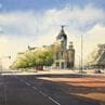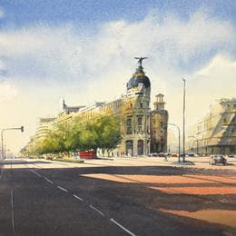 Esta obra de arte contemporáneo única y original "Red tram" fue realizada por el artista contemporáneo Min Jan. El artista utilizó la técnica Acuarela para crear esta pintura Pequeño formato sobre Papel de estilo Figurativo sobre el tema Urbano.