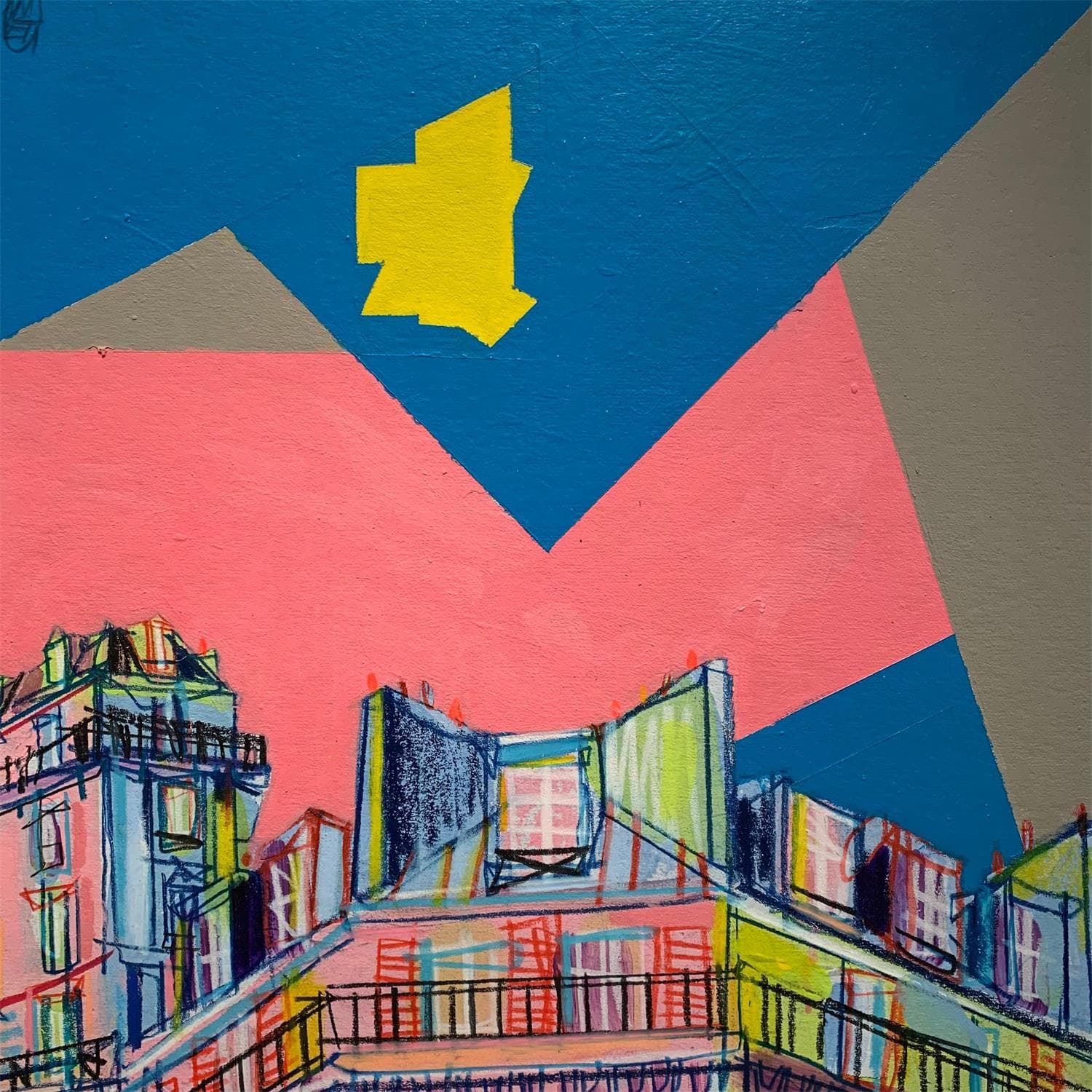 El artista utilizó las técnicas Cartón, Acrílico para crear esta pintura Pequeño formato sobre Cartón de estilo Figurativo sobre el tema Urbano.
