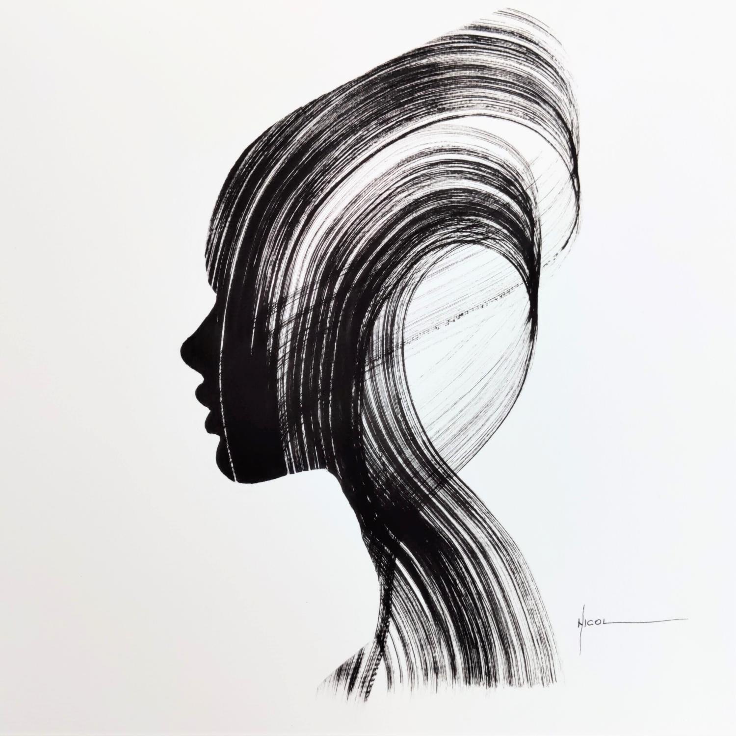 Pintura Time LXII por Nicol | Pintura Figurativo Retrato Ink